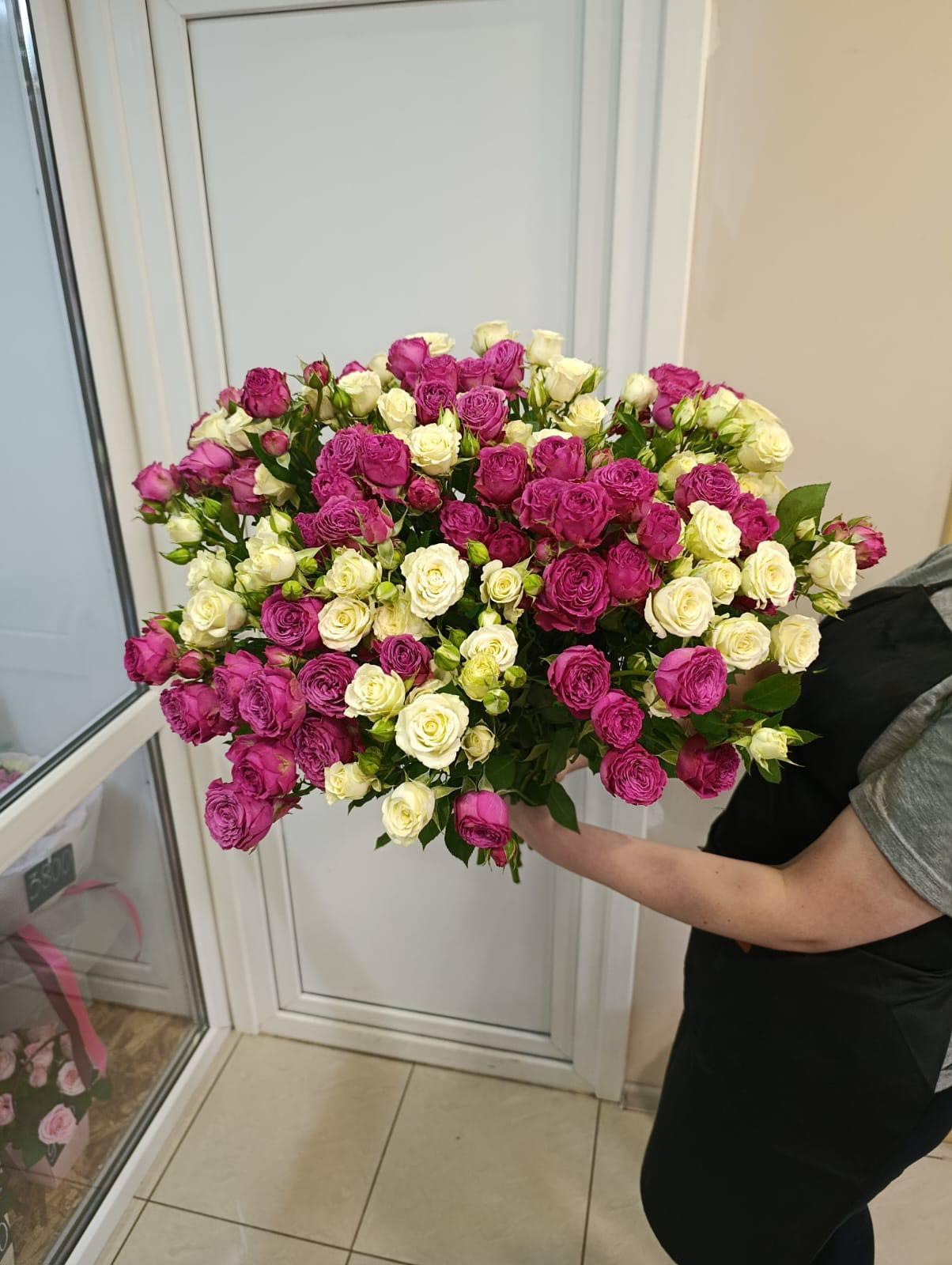 Букет из кустовых роз под ленту